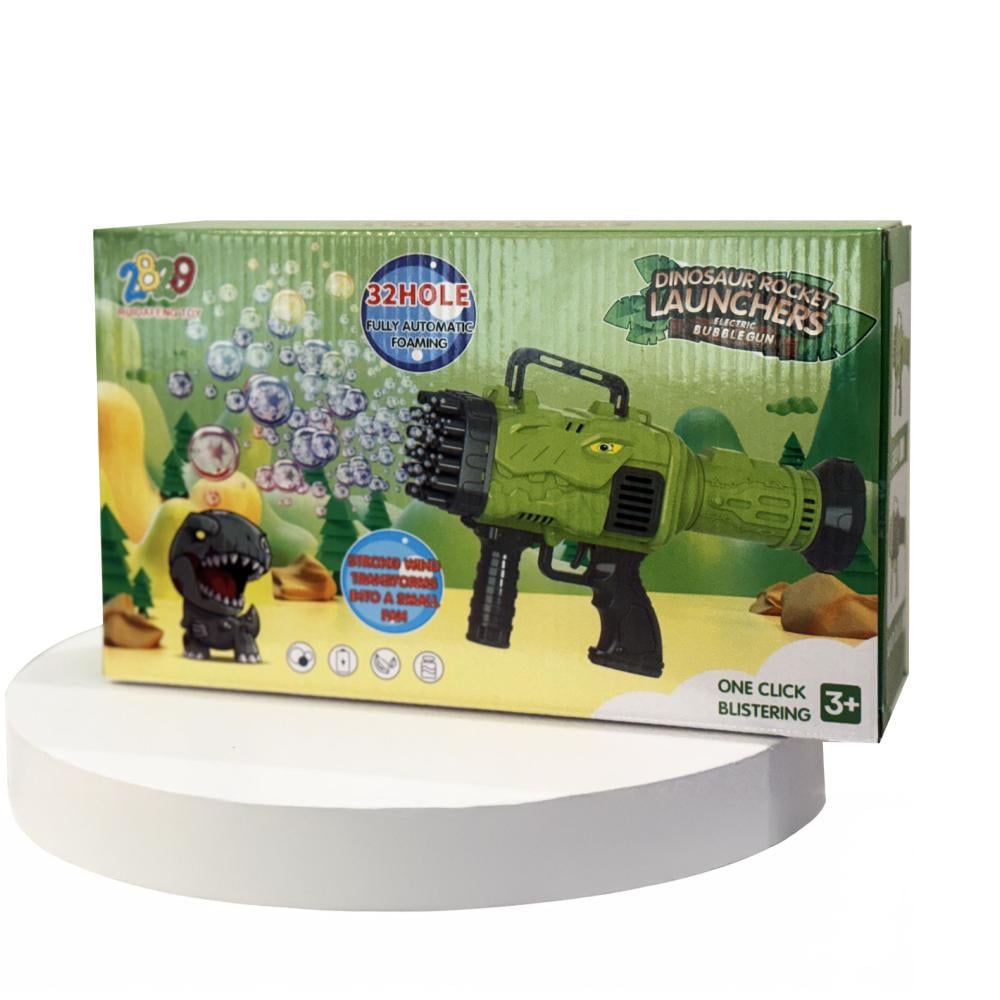 مع لعبة مسدس صابون اخضر: