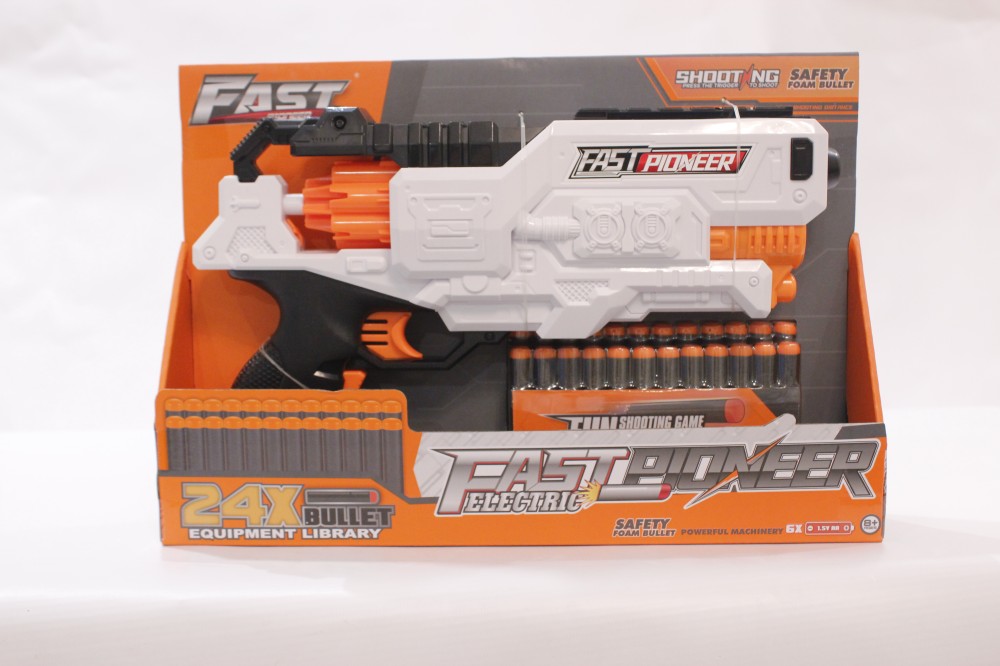 - يتميز بتصميم بسيط وسهل الاستخدام، حيث يمكن للأطفال سحب الزناد بسهولة ورش الأعيرة بشكل ممتع وبفضل هذه السهولة، يمكن للأطفال استكشاف خيالهم والقيام بمجموعة متنوعة من الألعاب والمهام.